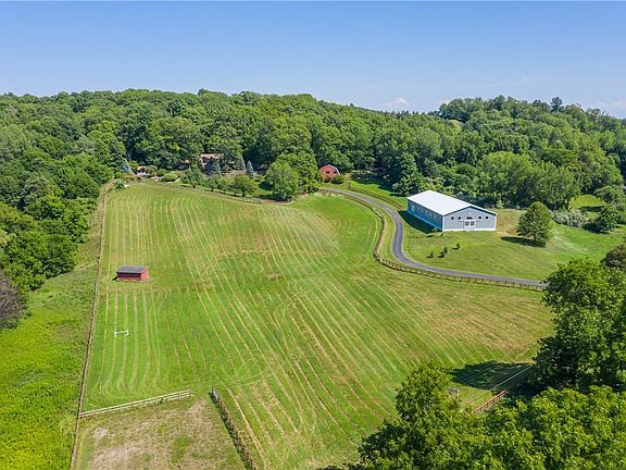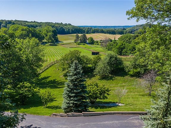 THE ULTIMATE EQUESTRIAN DREAM/COUNTRY ESTATE! 'Absolute paradise' nestled on 9.5 acres in the rolling hills of Victor! From the moment you enter the gated estate, you are graced with an abundance of post and rail pastures, picturesque winding driveway, & total serenity! This gorgeous property offers a stunning, custom, indoor arena, with stalls that allow direct access to a pasture, giving choice for your horses to have the freedom to be in or out if they wish! You will enjoy the luxury of the heated viewing mezzanine on the upper level of the arena making it a perfect facility to host clinics and lessons. A separate barn with 5 extra stalls, tack room, & large hayloft with ground level access for ease of hay storage is a huge benefit. This is a rare opportunity to 'have it all' The unique, open plan, spacious chalet style home with 4 bed/2.5 baths is positioned to offer miles of breathtaking views. Enjoy watching a storm rolling in from your living room window! The views are truly spectacular! You will love the luxurious, private, in ground pool w/hot tub & pool/guest house surrounded by beautiful landscaping & orchards with fruit trees! Ideally located, only 20 mins from Rochester, making this an attractive option for executive rental opportunities if desired!! An absolute must see. You will be impressed! VICTOR SCHOOLS! Delayed showings until Wednesday August 27th NO DELAYED NEGOTIATIONS SO MAKE YOUR APPOINTMENTS NOW BEFORE IT IS GONE!! 2025-09-10