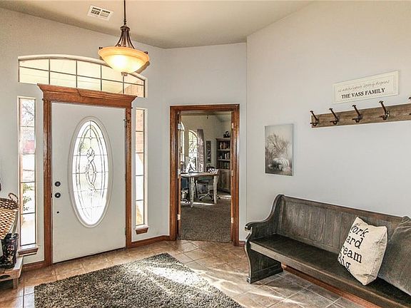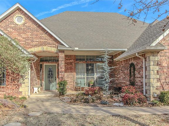 In one of Blanchard's most sought out additions, this beautiful home has 1 acre of land with mature trees and well kept landscape. 4 bedrooms, 2.5 baths, an over-sized three-car garage. The home has a 12 person storm shelter in the garage installed in 2019, new garage doors, new gutters all the way around the house, and a new roof in 2021. The kitchen has granite countertops, an updated white cast iron sink and new pull-down faucet, stainless steel appliances, a gas range, and a large pantry. The house includes a large, welcoming foyer, a formal dining space, a study or 4th bedroom with walk-in closet, large walk-in closets in all bedrooms, and 3 great porches. The master suite includes a sitting area, double sinks, a jetted whirlpool tub, a wraparound closet with built-in wardrobe, and shelving, and a separate shower. Enjoy your Privacy with a recently added privacy fence and a wonderful large deck, as well as a fenced garden. Large windows and spacious rooms are just a few more great things to look forward to in this great home.