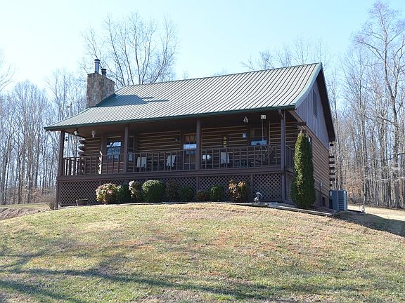 Gorgeous Log Home on 21 Acres! Beautiful 1.5 story home w/full unfinished basement, long covered front and back porch, functional open floor plan w/huge stone fireplace in the living room, eat-in kitchen w/work island/breakfast bar and French doors that lead out to back deck, master bedroom on the main level w/whirlpool tub & separate stand up shower. This home offer many extras including a water filtration system, 20x24 carport w/3 sides, 100 yard shooting range w/targets and huge detached 30x50 garage/workshop with 12x16 garage door, concrete pad, 220 wiring, telephone and intercom. This home definitely has it all! Just 15 mins from KY Lake, marinas and public boat dock.