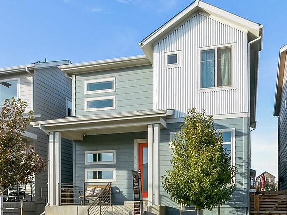 An amazing, open layout with abundant, south-facing windows and ten-foot tall ceilings greet you as you enter by the warm, wood-planked study. The large, gourmet kitchen is a cook's dream with stainless steel appliances, large island and hood vent. Upstairs, you'll find the grand master suite with room for a king bed, walk-in closet and large shower. Two additional bedrooms, a full bath and laundry room round out the second floor. An unfinished, 900sf basement with rough-in plumbing adds a plethora of potential. The extended deck, artificial turf and cafe lights create a relaxing, backyard space. Lovely park is less than a block away, including a playground. Trails surround the community with access to light rail and the Clear Creek trail system.