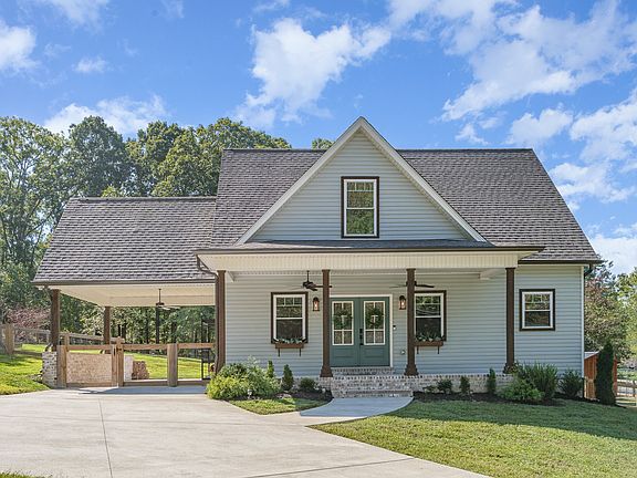 Welcome to this charming "like new" 3BR, 2.5BA farm cottage in Portland! Nestled on almost an acre, (just 7 miles from Gallatin and off the 109 Bypass) with a rocking chair front porch, a welcoming double French door entry. Step into an open-concept living, dining & kitchen areas, full-view windows, granite counters throughout, designer fixtures, & LVP flooring. Kitchen boasts SS appliances, farmhouse sink, island, & pantry. Main-level master features a luxury soaking tub, separate shower, double vanities, & large walk-in closet. Upstairs, you'll find additional flex and storage rooms, perfect for a growing family. Outside, enjoy a new barn-style storage shed, two charming chicken coops with enclosed areas for hens and gardening, and a beautiful, level lot with galvanized pinewood fencing. Oversized 16x30 concrete parking pad w/16x16 attached carport, and lack of HOA make this homestead a rare find. Perfect for those looking for peaceful, country living with modern conveniences!