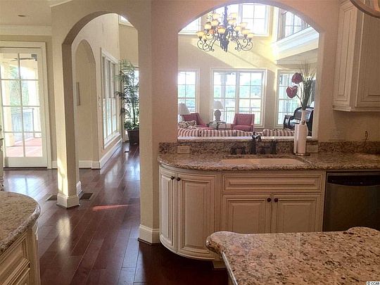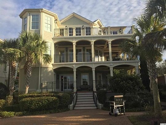 Magnificent grandiose Waterway front home in North Myrtle Beach. This luxurious 5 bedroom, 6 and 1/2 bath masterpiece adorns Brazilian hardwood floors along with tile and carpet throughout. Totally immaculate in every way. Custom kitchen cabinets, stainless steel appliances, granite, elevator to all floors, custom stairwell, custom chandeliers, cherry wood built ins around fireplace, surround sound, a vast waterfront master suite with a glamour bath, down stairs has a mother in law suite with a fully equipped kitchen, and much more! Three levels of covered balconies to enjoy uninterrupted views up and down the Intracoastal. Boat dock and boat lift included. Even a man's den, large enough to park at least 3 cars and your other toys! This is a must see home and a pleasure to view.