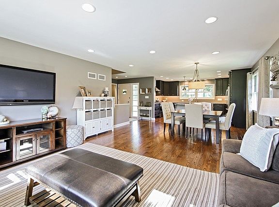 One of a kind opportunity! Situated on a picturesque 1 acre lot this beautifully renovated split level home has all the modern luxuries of today's lifestyle! Gracious open concept layout suited w/ formal entryway leading to a modern kitchen w/ 42" espresso cabinets, granite counter-tops, SS appliances and mosaic back-splash. Custom island is perfectly positioned to be used as buffet for entertaining or add'l seating. Gorgeous HW flooring leads to the adjacent dining and living rooms. Upper level features three generously sized bdrms complete w/ HW flooring and updated bathroom w/ dual sinks and soaking tub. Lower level offers add'l rec room, home office space, updated full bath w/ designer finishes and laundry room. Walkout access to new brick paver patio w/ stunning views of lot makes for the ideal entertaining area. Opportunity to expand on the rare large parcel lot or design your dream home. Home is just blocks from renovated Mitchell Pool,elementary school, parks, playground, and more