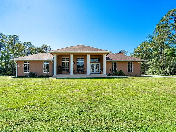 TAKING BACK UP OFFERS. Have it all close to everything with this remodeled immaculate split floor plan 4/3 in the exclusive Acreage. Home features a beautiful large 1.15 Acre lot per IMAPP, NEW Roof w/leaf guard gutters & vents. Impact glass double door entry & 8’ windows, NEW custom 15”/42” cabinets, stainless steel appliance, farmers sink, granite counter tops with custom recessed outlets, large living and entertainment space, fire place, formal dining and den/office. Large15x19 primary bedroom and bath with dual walk in closets, floor to ceiling glass look through shower to private garden, soaking tub dual sinks. Huge 860sqft new screen in patio, 150ft Driveway, new ceiling fans. HVAC, water softer, baths and so much more replaced within 2 yrs. New shed w/power.