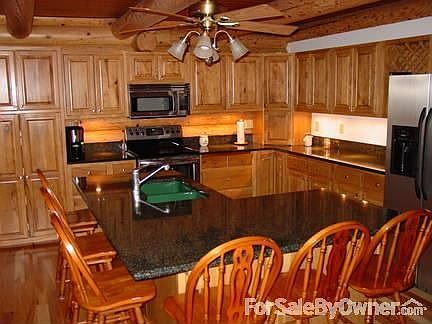 This 4384sf custom built 10" log home is situated on a ridge overlooking a beautiful valley with rock outcroppings in Grant County. Two fireplaces, an open country kitchen with stainless appliances, granite countertops and custom hickory cabinets make a warm gathering place with stunning views. A 15'x18' loft above the kitchen can be a play area or another bedroom. The hickory flooring in the kitchen, great room, dining room Additional property info: http://www.forsalebyowner.com/listing/26284?provider_id=28079