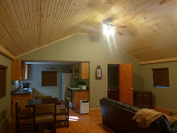 Clay County West Virginia 13350 Elk River Road 1.1 mile East from Hartland Bridge 3 Bedroom Cabin on Beautiful Wooded 1 acre River Lot - Large Family Room, 3 Bedrooms, 1 ½ Baths, Screened Porch, 26 X 30 Covered Deck, Steps to small boat dock at river. AC, Heat Pump, & Pellet Stove, Completely furnished. Dwelling used as a year-round camp.