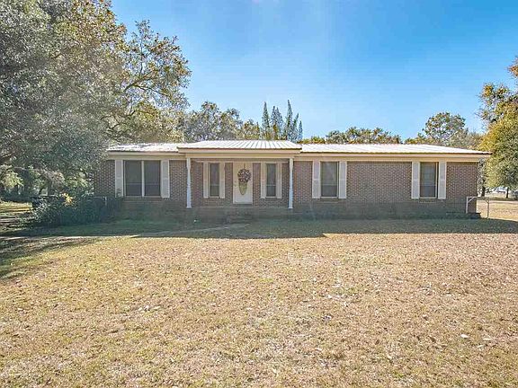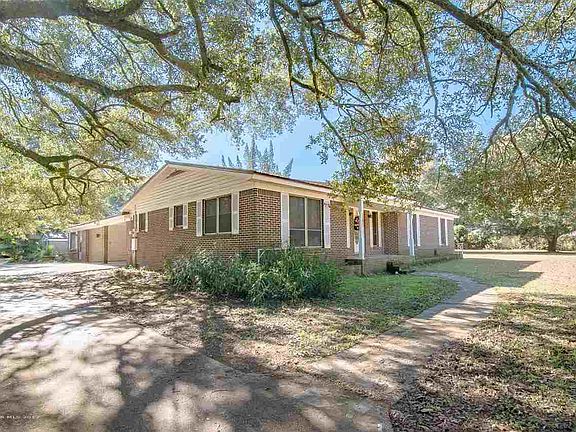 The rural setting of this Ranch-style home is sure to please! Fields and farmland surround your 1.7-Acre property, but at the same time the interstate is only 10 min. away! Enjoying the peace of the Baldwin County countryside, the home still retains close proximity to many of Daphne & Spanish Fort's popular destinations. This home-plan provides two spacious living areas in the Main House, plus a Separate Guest Suite off the Carport, and roomy Storage Building/Workshop! The Main House Dining Area is spacious enough to accommodate a large dinner table and many guests, with the Kitchen also supplying a Breakfast Bar. Additional Kitchen amenities include: some Glass-Front Cabinetry, ample Display space above cabinetry, and some Stainless Steel Appliances. Other distinctive features are: Built-in Seating in one Guest Bedroom, Ceiling Fans throughout, Covered Front Patio, and Metal Roof. A cozy home in the peaceful Baldwin County countryside...this could be your home sweet home!