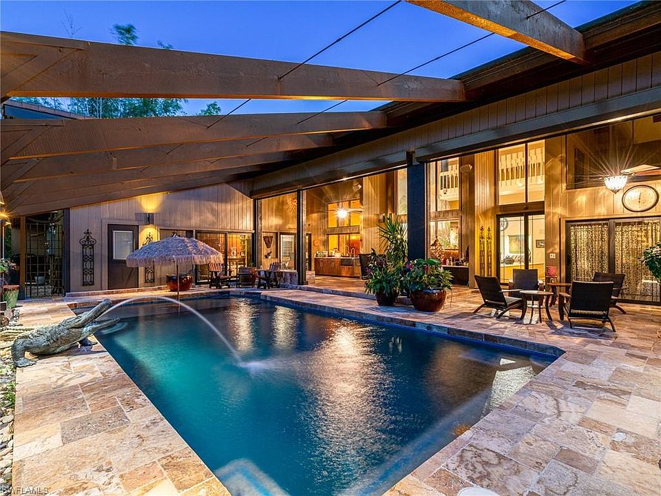 H257 - Imagine waking up every day to a tropical paradise only steps away from the heart of town in one of the most unique neighborhoods in Fort Myers. Almost two acres of magnificent landscaping includes a waterfall koi pond, outdoor fire pit, outdoor grill and kitchen, outdoor stereo system, new sprinkler system, and salt water pool with heating and cooling capabilities. Relax in your home of 6117 Sq Ft while protected with impact windows, hurricane proof doors, electric shutters, and a full house generator. The property features three AC units, two hot water heaters, and two natural gas tanks to serve the generator, fireplace, grill, and outdoor fire pit. Entertain in your gourmet kitchen with two Wolf ovens, Subzero fridge, Bosch dishwasher, central vac, and Culligan water system. The family room includes a massive copper and keystone coral fireplace and Pecky Cypress beams. Three original murals throughout the house were painted by Tim Davis. The second floor has a large storage room and loft area. Four bedrooms--including two master suites--plus a den, living room, family room, and an extra large laundry room. This home is a must see.