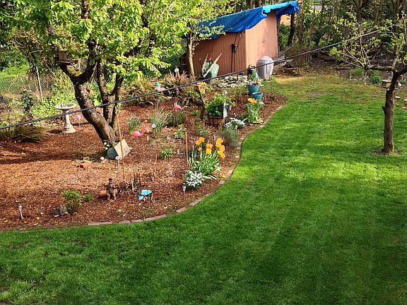 Desirable location on quiet culdesac. Good bones in this 1955 ranch. Needs TLC to shine! Huge private backyard with fruit trees, shed and garden space. Large kitchen with casual dining space. New vinyl windows through out!