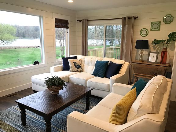 This beautiful property has a new completely remodeled home and a spacious, gorgeous guest house. The 2.43 acres has 160ft of lake frontage on an 80 acre all-sports private lake! The lake house has a cottage feel with a great view. The upstairs living room has a large picture window with a walkout deck. The spacious kitchen has vaulted ceilings, all stainless appliances, bar top and room for dinning table, making it perfect for entertaining. Master upstairs with vaulted ceilings and large walk in closet/laundry room. The downstairs living area walks out to a covered patio at the lake level. The house has tile showers on both floors. The guest house is perfect for your friends and family featuring a 10ft tile shower and full kitchen with slate floors downstairs, a large living/rec room and bedrooms upstairs. This property is THE ideal place to raise a family at the lake. The neighborhood has a classic lake community feel, allowing for watersports and fishing by summer and ice skating and ice fishing by winter. Whether this property interests you for relaxation, wildlife observing or watching your family grow, this picturesque landscape is a must see!