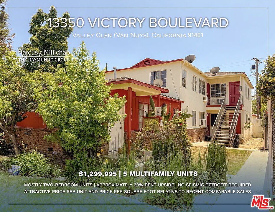 With excellent visibility along one of the San Fernando Valley's main thoroughfares, the property offers an investor the opportunity to add significant value by recapturing approximately 30% in rent upside. Five garage parking spaces in the rear of the property provide a unique amenity for this neighborhood, as well as a supplemental revenue stream. Portions of the plumbing system have already been upgraded with copper pipes. The building is not on the Los Angeles Department of Building and Safety's seismic retrofit list, saving an owner from an otherwise costly renovation (Buyer to verify). Located near the intersection of Fulton Avenue and Victory Boulevard, the property allows tenant convenient access to the 170 and 101 Freeways. NoHo West, a newer mixed-use development, is only two miles from the building and offers residents a variety of dining and entertainment options, including Regal Cinemas, Trader Joe's, LA Fitness, Starbucks, Nordstrom Rack, and Paris Baguette.