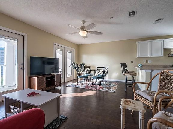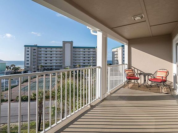 A RARE OPPORTUNITY TO OWN AN IMMACULATE TOP-FLOOR 2BR/2BA GRAND CARIBBEAN UNIT WITH AMAZING VIEWS OF THE GULF! This 4th floor, beautifully furnished condo features an open living & dining area that flows out onto the oversized balcony, lots of cabinet storage & countertop space in the kitchen with stainless appliances (glass cooktop with oven, built-in microwave, dishwasher, Frigidaire Smudgeproof side-by-side refrigerator with In-Door ice & water dispensers), and laundry closet (in kitchen) with FULL SIZE stack washer & dryer. The hallway bunks were converted to a large closet (owner lived there full time & needed the space), but buyer can convert closet back to bunks, if additional sleeping capacity is desired. Both bedrooms are large, with decent sized closets & master bedroom has its own private bath, while the guest bath can be accessed from the hallway or the guest bedroom (allowing somewhat semi-privacy). Seller updated all interior hinges & doorknobs with satin nickel hardware, installed Pergo XP laminate wood-plank style flooring in bedrooms & main living areas, painted walls/ceilings & installed new baseboards throughout. Both baths have been updated with granite countertops, new light fixtures, new commodes, tile floors & decoratively framed mirrors. A new CARRIER AC system (inside & outside units) was installed in 2015, along with Honeywell programmable thermostat. Grand Caribbean is a well-maintained, gated community that offers many great features, which include an elevator, sparkling pool, hot tub, BBQ areas & access to the beach via boardwalk (located on the east side of Sandy Key condos), so you can stroll down to the beach & put your toes in the sugar-white sand! Or use the sidewalk along Johnson Beach Rd to go for a walk, jog or bike ride to the Gulf Islands National Seashore. Or maybe you just want to kick back & relax on your balcony & watch the dolphins play...YES, you can see the dolphins from your balcony! Call TODAY to schedule a showing!