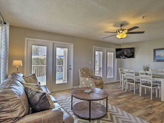 Two bedroom end unit with some Gulf views and outside storage for all your beach gear. Complex has a gazebo on the lake, 2 heated swimming pools, hot tubs, grilling areas, picnic tables, dedicated access to the Gulf of Mexico, and gated parking