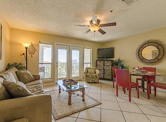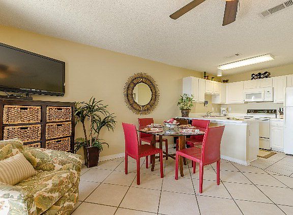 REALLY CUTE 4TH FLOOR GRAND CARIBBEAN EAST CONDO with great views of the Gulf of Mexico. This is one of the few units with the wrap-around double balcony. Interiors are bright and immaculate with new bedding in the master and bunks and a fresh painting through out. TILE FLOORING THROUGHOUT MAIN LIVING AREA, KITCHEN & BATH. Incredible value as an investors' condo or the perfect beach get-away, just steps from the beach. The east building has direct access to the beach walk to the east of Sandy Key. Turn key ready. Hurry on this one!!