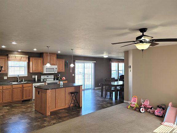 Enjoy all the space on this main living home featuring a spacious master suite plus 3 additional bedrooms. Large open kitchen with island & pantry. Two separate family rooms to keep everyone happy! Off the dining area through the patio doors you have a wood deck with southern views. The lot is just over an acre and is completely fenced in! Additional storage shed also included for extra storage.