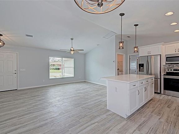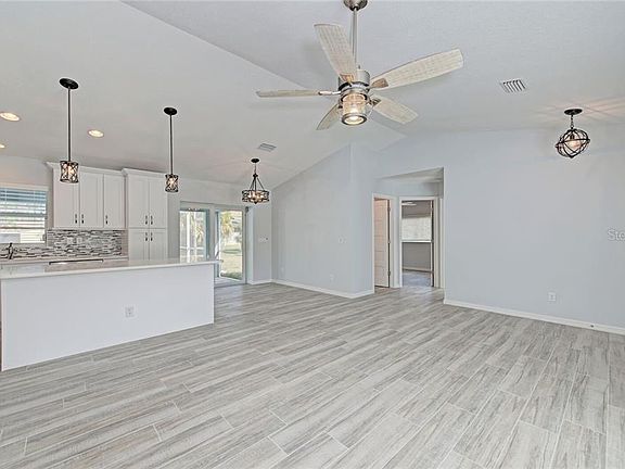 Under Construction. 3/2/2 open concept plan with large screened and covered lanai. Home includes impact resistant windows and doors, spray foam insulation, quartz countertops, all wood cabinets, and wood look tile throughout the entire home! Expansive L-shaped kitchen with pantry and island is perfect for entertaining. Owner's suite features a spacious walk in closet and ensuite with dual vanities and spa-like walk in shower. Photos shown are of same plan but may not reflect color selection or options in subject property. No construction loan needed. $5,000 holds home until completion. Lot has plenty of room for pool and sits in a NON flood zone! See attachments for offer instructions, home features, and floorplan.