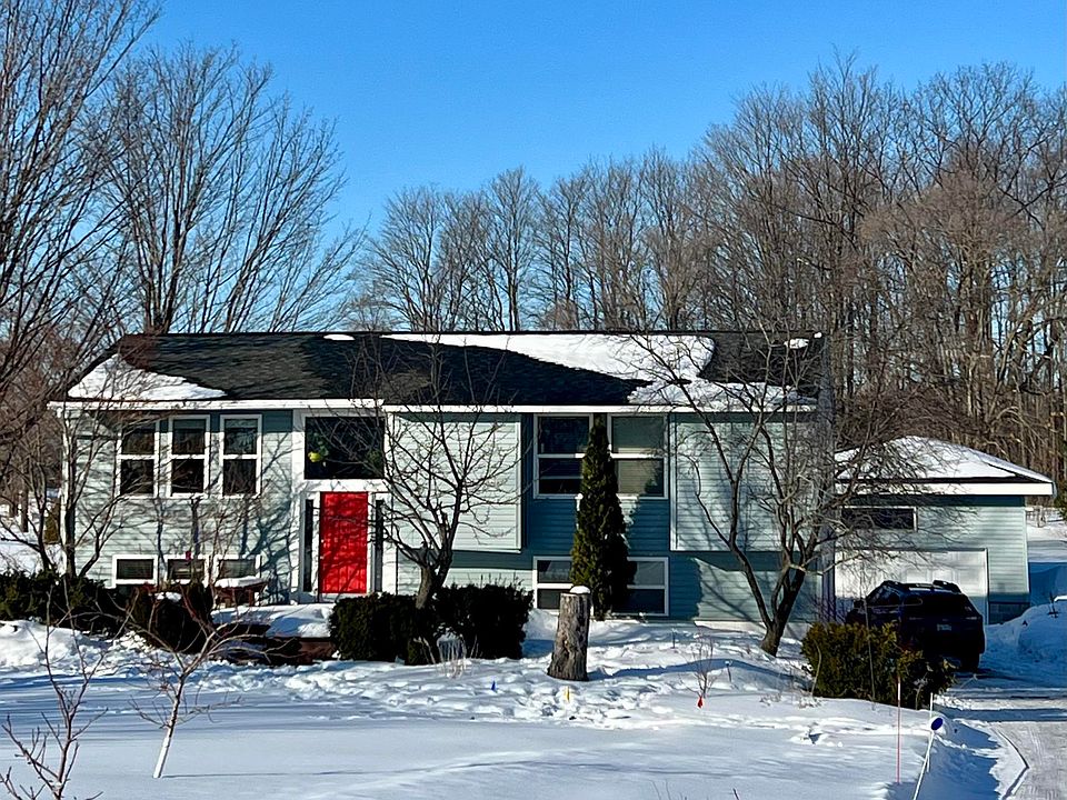 Charming 3 bed/3 bath home in Elk Rapids School District. Inviting open concept main living features updated kitchen with large island, white cabinets and subway tile backsplash. Primary bedroom features a private half bath. Cozy lower level with natural gas stove and full bathroom makes a great space for the family to gather. Property has mature landscaping with various fruit trees and a chicken coop. Detached garage offers tons of extra storage space. Walk to Milton Township soccer complex, park and pickle ball courts. Close to Elk Lake and just minutes to all that downtown Elk Rapids has to offer.