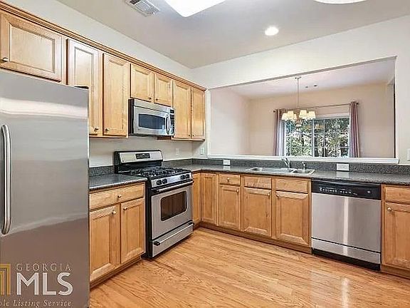 Welcome Home! This Alpharetta townhouse is in an excellent location near downtown Alpharetta! All new interior, exterior paint and all new carpet. Large eat in kitchen features SS appliances and opens to living room and dining room. Vaulted master bedroom, double vanity in master, separate garden tub & shower, large walk-in master closet. 2 additional bedrooms and full bath upstairs. Large backyard with patio, great for outdoor grilling and entertaining. Green space in rear. 2 car garage. Minutes from GA400, shops, restaurants, and located in a swim community. Tenant pays water, trash, lawn maintenance