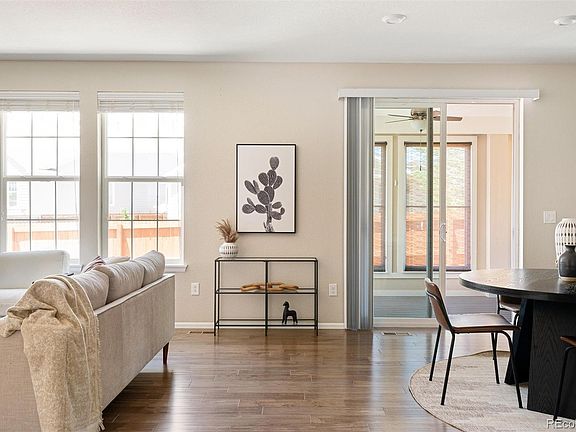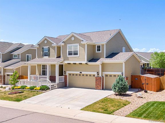 Enjoy ultimate versatility in this move-in ready 5 bed, 4.5 bath Amber Creek "Next Gen" home. A unique main level apartment suite is equipped with a private entrance, kitchenette, living/dining room, bedroom with walk-in closet, full bath, & stackable washer/dryer. It can be utilized as a guest suite, nanny quarters, apartment for a college kid or aging parent, or as a long or short-term rental unit. With direct access to the main home, the Next Gen suite allows occupants integration with, or separation from, the rest of the home. A sprawling front porch and spacious entryway welcome you into the main home. The open-concept floor plan features a living room with gas fireplace, a casual dining space, and a well-appointed eat-in kitchen. White cabinets, granite countertops, SS appliances, and a large center island, make the kitchen visually appealing and functionally efficient. A slider off the dining area leads to a sun room with built-in cabinets and access to the back deck and patio with pergola; great for grilling and dining al fresco. Don't miss the private yard with storage shed, professional landscaping, and sprinkler system. Rounding out the main level are a powder bath and mudroom with access to the attached 4-car garage. Upstairs you'll find an office nook, laundry room, 2 secondary bedrooms with a shared ensuite bath, and the primary suite with tray ceiling, 5-piece bath and walk-in closet. The finished basement has a private bedroom, stylish bathroom with black grid glass shower, large storage room, and a spacious family/rec room featuring a wet bar and enough space for a theater, home gym, and play space. Leased solar panels and dual zone HVAC offer energy savings. Enjoy close proximity to parks, open space, Trail Winds Rec Center and Skate Park, Veterans Memorial Aquatic Center, King Soopers grocery store, local schools, and so much more!