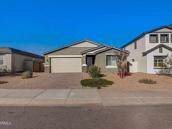 Once you step inside you are sure to fall in love with this Gorgeous Home!! Spacious floor plan with Open Concept and BEAUTIFUL TILE PLANK FLOORING Throughout. The STUNNING KITCHEN is sure to IMPRESS with TONS of designers choice Cabinets, Beautiful Granite Countertops, Tastefully Done Tiled Backsplash, Oversized Island, Pendant Lighting, huge barn style sink and Stainless Steel Appliances with warranty. . Enjoy the Copious amount of Natural Light in the Main Living area as it Shines through the Massive Sliding Glass Door. In the Spacious Owner's Retreat, you will find a Well-Appointed EnSuite, Fully Equipped with Dual Vanities, Large Step-In subway tiled Shower and Walk-In Closet . Garage is wired for EV cars, tons of storage as well in garage and 8FT garage door opening! RV Gate! Views- , view views of the Foothill mountains & Veterans Memorial Trail! Den can be easily transformed into a 4th bdrm. Tankless H20 tank, sound barrier insulation in installed in side walls & radiant barrier on roof makes this Newer home SUPER energy efficient! Location is Ideal- near Parks, community hike and Bike Trails, Lake pleasant, and much more! don't miss out- go see today!!