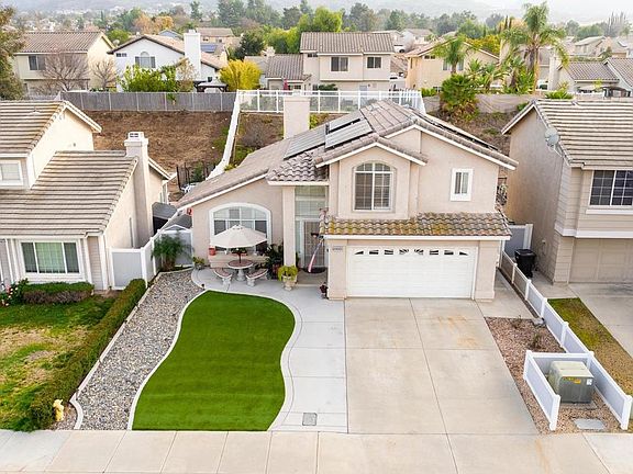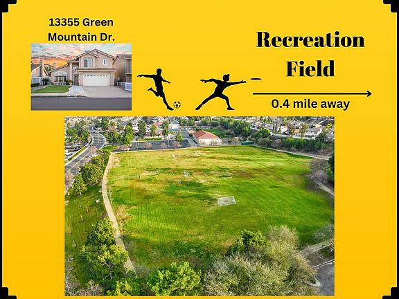 Quiet Road, Paved and Landscaped Yards, Sparkling Pool, 20+ Solar Panels and Updated Kitchen all within walking distance to the Community Clubhouse, Gym, Pool, Recreation Courts AND Fields. Welcome to 13355 Green Mountain Dr. Beyond the manicured patio enter into the formal living room, complete with lofty ceilings and windows letting the natural light dance through the property. Continue about the wood floor, a family room uniquely warmed by the gas fireplace. Transition now on tile, a dining and kitchen area equipped with alluring crimson cabinets. Outside is an entertainers dream with the time tested patio/pool combo, enjoy every big game poolside with family <3. Top floor contains the private and full three bedrooms and two bathrooms. Plantation Shutters are installed at every window. DAZZLING sparkled seashell infused swimming pool, like swimming with diamonds! This property has so much to offer and more for their owner, please enter and experience it. Call your preferred brokerage today!