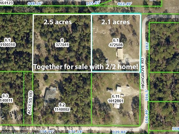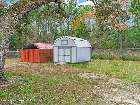 WHAT A FIND!! 4.6 acres with one home on it that has 2 bedrooms and 1 bath!! The 4.6 acres is made up of TWO parcels of land! The two parcels that are included are: Parcel Key: 00472508 and Parcel Key: 00377041. Parcel Key: 00472508 is 2.1 acres with the home on it and it is cleared and fenced and zoned AG. The second parcel of land that is included in the sale is Parcel Key: 00377041 which is 2.5 acres and is zoned R1C, which means it can only have a site-built home only; no mobile homes or manufactured homes allowed. It sits BEHIND the home and is wooded with a clearing for a homesite. It has no structures on it. NEW ROOF 2024!! Amazing open kitchen with beautiful cabinets and stainless steel appliances! Open floor plan make this home feel light, bright, and spacious! Dining room! The master has a large walk-in closet! The home also has a bonus room that could possibly be made into a 3rd bedroom, office, gym, or playroom! Lots of sheds for storage! A must see for sure! You can build another home on this 2.5 acres to make it a family compound or have a rental income home/property! Or live in the existing 2 bed/1 bath home while you build your dream home on the wooded 2.5 acres! So many options! Both lots together total 4.6 acres! NO FLOOD ZONE! NO HOA! Bring your RVs, campers, boats, ATV, all your toys, and bring your horses, chickens...and the whole family! So much potential! So many possibilities with this property! It's located off Barclay Ave in the center of Hernando County!! Located close to everything...the NEW Tampa General Hospital, movie theater, groceries, Sam's Club, shopping, coffee shops, restaurants and bars...and more! Just minutes from the Suncoast Parkway for easy and quick access to Tampa for work and play! Highgrove is paved almost all the way to the home!!