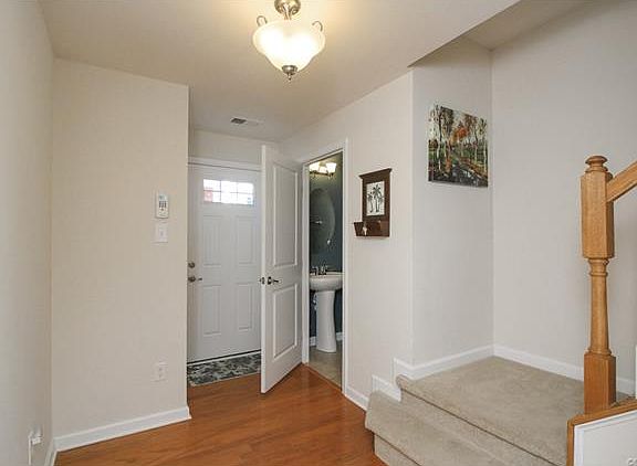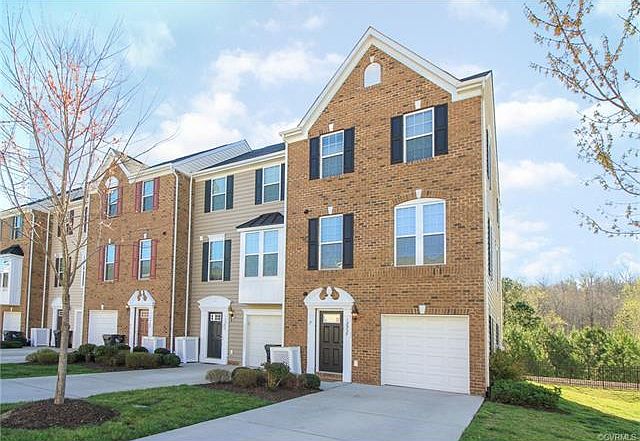 Wonderful Brick Front, 3 Level End Unit Townhouse. 3 bedrooms, 2 full and 2 half baths. Den with gas fireplace on first level with half bath. Beautiful new wide plank hardwood floors throughout the main floor. Large open, modern kitchen with all the right touches! Granite counters, tile back splash, stainless steel appliances and 42" maple cabinets. Kitchen has large island with seating and a breakfast bar for even more seating! Large eat in area provides plenty of room for gathering. Nice back deck that overlooks the environmental protected wood line. Kitchen is open to second level family room with its own half bath. Upstairs the Master Retreat! Enjoy the en suite bath which includes a soaking tub with separate shower and double vanity sinks. All bathrooms have new tile, vanities and GRANITE!! Master Bedroom has two closets! One walk in and one double door. Two additional bedrooms can be found on this level with another full bath. Walking distance to American Family, Kroger, TGI Fridays, Panera (the list goes on). Chesterfield schools/shopping/theatre/zoo and 288 just minutes away. You really need to see this one today! Will not be on the market long!!