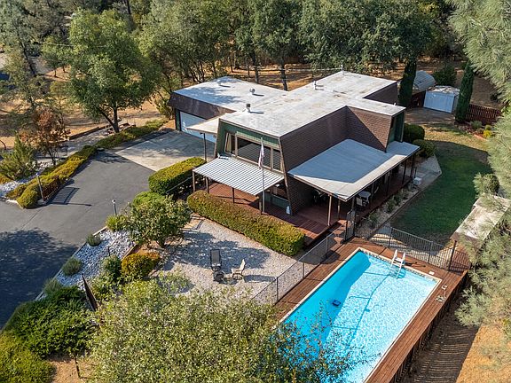 Nestled in the serene Ranchera Pines subdivision, just minutes from the sparkling waters of Shasta Lake, this wonderful 3 bedroom, 2 bathroom home stands out with its architectural design and wonderful pull through driveway with RV parking. Spanning a 1 acre lot, the property boasts a large in ground pool, ideal for cooling off on warm summer days or hosting lively gatherings with family and friends. The open concept living area features abundant natural light, tall ceilings, pellet stove, loft, new carpet and more!