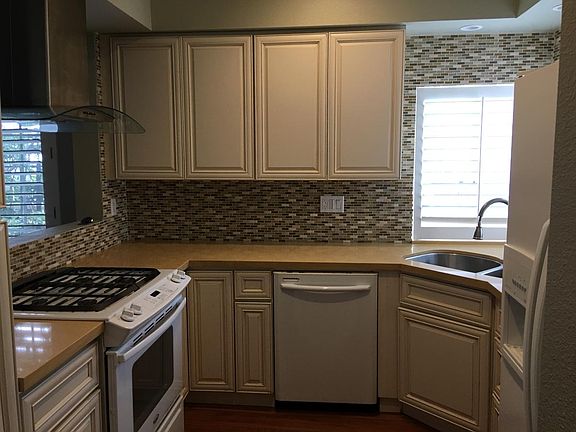 Lovely first floor 2 bedroom, 2 bath condo unit available for rent in desirable Carmel Valley location, right off Del Mar Heights Road and within walking distance of One Paseo and Del Mar Highlands Shopping Center. World class schools in the Solana Beach School District and San Dieguito Union High School District. Open floor plan with dual-master bedrooms, wood-look vinyl & tile flooring, plantation shutters/blinds, tranquil patio with room for BBQ & patio furniture, new stainless steel refrigerator, dishwasher & microwave, gas stove and fireplace, heating and A/C, and a washer/dryer inside unit. Two closets in each bedroom. Small one car detached garage with overhead storage space and off-street parking for one additional car. Quiet Cambria complex features tennis courts and pool/spa, with a nearby park and running trails that overlook the Del Mar racetrack and ocean. Owner pays for trash, sewer. Renter responsible for all other utilities (water, electricity/gas, cable/internet). Pets under 40 lbs. considered with additional $300 pet deposit.