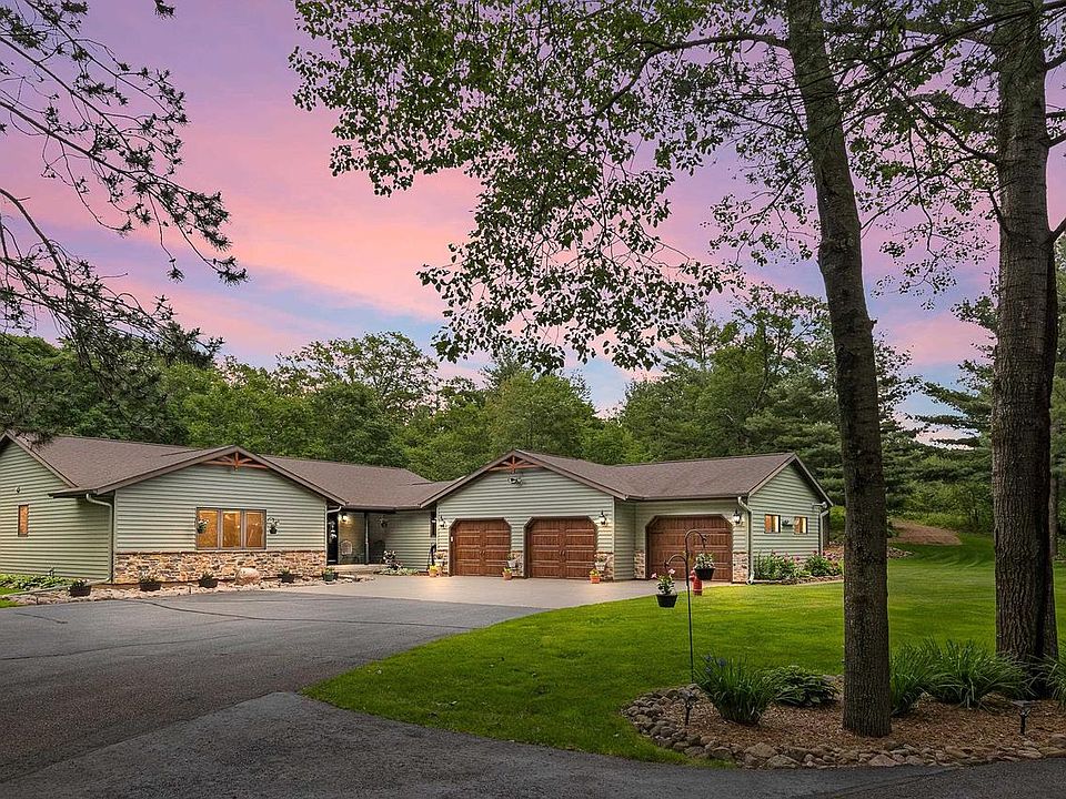 Searching for your own little slice of heaven? You are in luck! Welcome to 13359 Hollywood Road, where you will find an incredible mix of quality, functionality, and peaceful living. Located on 9.98 picturesque acres, this 3BR/3.5BA ranch home offers something for everyone. As you pull up the winding blacktop driveway, you will be captured by the mature trees, finely tuned landscaping, and the peace and quiet that surrounds you. The gorgeous home has been incredibly well maintained, and the outbuildings are what dreams are made of. As you look at the home, you will immediately notice the quality and attention to detail, from the newly installed steel siding and wood-esque garage doors, to the accent rock and craftsman style gable brackets, nothing is left to do. Step inside, and you will find over 2400sf of main floor living space, packed with hardwood floors, solid 6 panel doors, and space to entertain. Large eat-in kitchen offers an abundance of solid oak cabinets, granite countertops, updated appliances with double oven, eat-at peninsula, space for an oversized dining table,,as well as patio doors leading to your outdoor oasis. Separated by a half wall with arched openings, you will find the main living room, complete with large windows for taking in all that nature provides, and a gas fireplace with sprawling natural stone surround. The massive 4 season room lined in custom milled tongue and groove, and walls of oversized Anderson windows, complete with a freestanding gas fireplace, will provide you with the perfect place to enjoy your morning coffee and book or watch the snow fall in the forest on a beautiful winter day. King sized primary en-suite provides ample room, and features an attached bath with granite top dual vanity, whirlpool soaking tub with custom stacked stone surround, shower, and direct access to the walk-in-closet. The main floor also boasts two additional guest rooms, a second full bath, utility room with updated Maytag front loading W/D with pedestals and sink, and a half bath! Head downstairs, and you will find the ultimate man-cave, complete with full wet-bar, gas fireplace, full bath, and all sorts of room for entertaining- you will want to mix an Old Fashioned and grab the cribbage board! While downstairs, you will once again notice the quality construction and well thought out design of the home, evidenced in the poured concrete walls, TJI floor joists, and direct stairway access to the heated and insulated 3 car garage. The lower level also provides a plethora of unfinished storage space, a large office for accommodating work from home, and mechanical and control room for the in-ground POOL and SPA! Incredible backyard hosts the heated, in-ground pool loaded with LED accent lighting, permanent spa, full concrete surround, and gorgeous perennial landscaping- with this sort of privacy, swimsuits are optional! The house and pool are only part of the equation! The outbuildings on this property will leave you drooling, and provide opportunity for car collections, RV and Toy storage, at-home business, and more! Constructed in 2019 by M.P.B. builders, the commercial grade 100x50 insulated, heated and fully tinned building, boasts 16 foot wall height, 3 bays with 10 foot doors, 1 bay with 14 foot door, extra depth concrete in one bay for future car hoist insulation, dedicated 6? well, hot water, floor drains, overhead fans, and LED lighting- WOW! Attached, you will find an additional 63x54 heated and insulated building with dual ended overhead doors, and fully enclosed lean-to(not insulated or heated)- the opportunities are endless! As if those buildings were not enough, there is an additional 24x24 detached garage- trust me, you will never run out of storage! You?ll find yourself wandering around for hours though the finely manicured trail system, weaving through the woods, and up and down the hills, or tending to the garden with peppers, tomatoes, cucumbers and pumpkins- this is a dream spot wheth