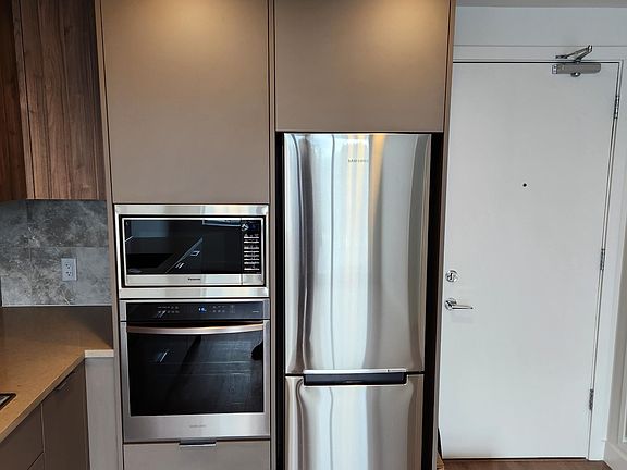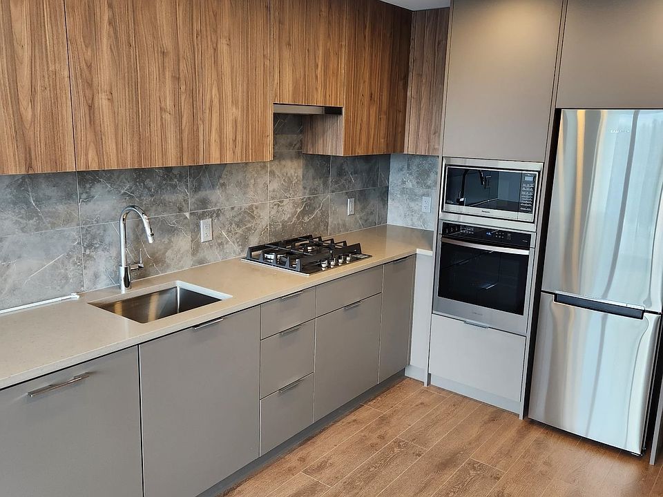 THE HOLLAND by TOWNLINE in the heart of Surrey City Centre. 1 BED 1 BATH apartment on the 5th floor. Kitchen with Samsung appliance package, with an opulent tiled backsplash, under-cabinet lighting, and two-tone cabinets, suitable for all your storage needs. The primary bedroom offers room for a queen size bed with two end tables. A/C, over-height ceilings. 13,000 sf of building amenities include a Music room, Bussiness Lounge, Gym, and Social Lounge. The social lounge includes an indoor huge kitchen and lots of space for your guest to enjoy and outdoor BBQ stations. Just a walk to Surrey Central Skytrain stations & access to all of City Centre's retailers ensures an effortless day-to-day lifestyle. Rentals & Pets Allowed.