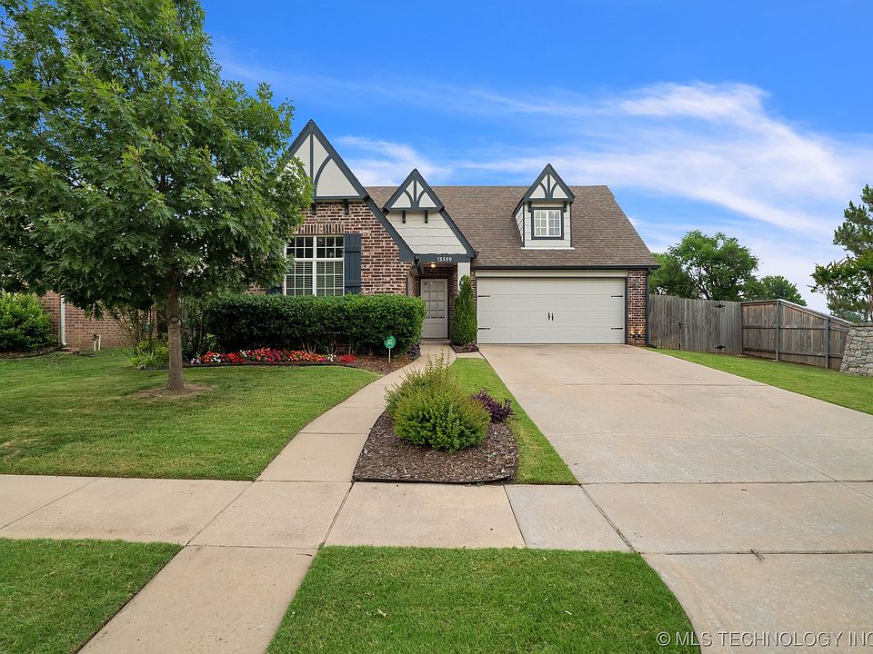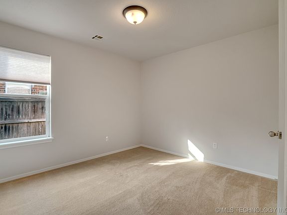 Move-in ready 3/2 open floorplan with split bedrooms. Former model home has many extras including tile in main living and high traffic areas, underfloor heating in main living area and master bathroom, Granite kitchen with island/snack bar, vaulted ceilings, surround sound in living room, walk-in closets in all bedrooms, laundry room connect to master closet, wide arched doorways. Fresh paint throughout, new carpet in front bedroom. Exterior paint only 1 year old, Rainbird sprinkler system, professional landscaped w/lighting, backyard deck that overlooks a gorgeous view of neighborhood pond and sunrises. House sits on a corner lot and is close to the neighborhood pool! Neighborhood stocked ponds, park, splash pads, pool, and clubhouse. Bixby schools. Must see!