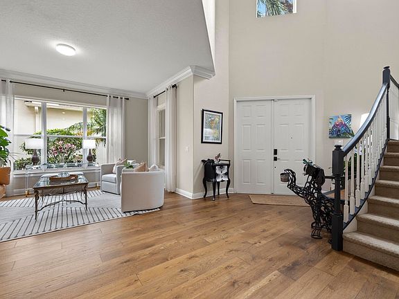 Welcome to this large, light and bright 5 bedroom 4 bathroom pool home that is situated on a serene lake front lot. All bedrooms are located upstairs and are generous in size. The main level has a large den that can easily be turned into a sixth bedroom or leave as is for the perfect home office or play room. This home offers a perfect blend of comfort, style and tranquility. Featuring a tastefully updated Kitchen with quartz counters, gas cooking, stainless appliances, center prep island and a pantry. The primary bathroom and downstairs bath have been fully updated with modern touches . Step outside to the large patio that surrounds a beautiful saltwater heated pool / spa , with lake views, a built in BBQ with a beverage fridge and permanent awnings makes this the ideal space for family gatherings and entertaining. Black Diamond is conveniently located near top rated schools , shopping, dining, recreational facilities and Palm Beach Polo making this home the perfect balance of peaceful living and accessibility.
