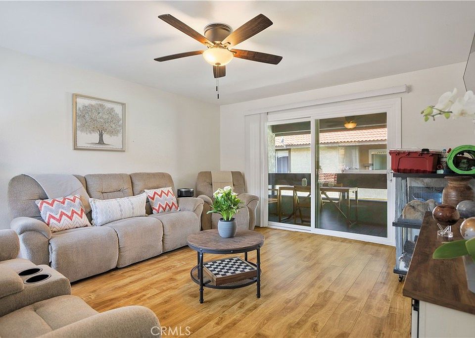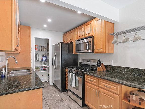 Welcome to this wonderfully appointed upper unit in a desirable area in Corona. This home has been meticulously maintained, and has an abundance of natural light. It is updated throughout, with the AC and Furnace being installed in 2021, and all newer dual paned windows and sliding doors to help to keep the home cool on a warm summer day. The home features 2 bedrooms, each with walk-in closets, and 2 bathrooms. The extra large master bedroom features an en-suite bathroom. The kitchen comes equipped with stainless steel appliances, black granite countertops, and a walk-in pantry. Parking is never an issue, as the condo comes with a 1 car garage space, plus 1 additional assigned parking space, just steps from the front door. As an added bonus, the garage comes with a Wallbox EV Charger, which was installed in 2022. The community is made up of multiple four unit buildings, and each building has a laundry room that is shared between the four units, with space for each unit to have their own personal washer and dryer. The community also features a swimming pool. Don't miss the chance to make this charming home your own!