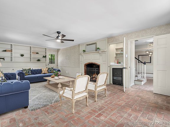 Tucked away in desirable Woodland Park on a peaceful cul-de-sac, this charming .63-acre retreat with beautiful mature trees blends timeless warmth with modern updates. Step inside to find rich brick floors leading through the entry, dining, and spacious living room, where a cozy gas-log fireplace, wet bar with wine fridge, and a wall of bookcases invite gatherings with family and friends. The beautifully remodeled kitchen is a chef’s delight with live-edge granite countertops, custom lighting, pantry storage, and high-end stainless appliances, including a 5-burner gas cooktop with convection oven beneath a striking copper vent hood. A versatile den with a nearby full bath offers the perfect guest suite or home office, while the upstairs primary suite feels like a true getaway with its own cozy fireplace, walk-in closet, and spa-inspired bath. Thoughtful updates include fresh paint, vinyl windows, new water heater, and dual HVAC systems for year-round comfort. Enjoy quiet mornings on the covered front porch, afternoons in the private backyard with full fencing, and weekends tinkering in the garage workshop—all just minutes from Wayside Elementary.