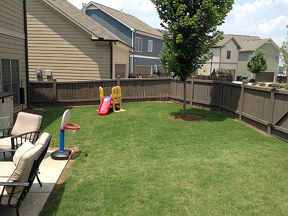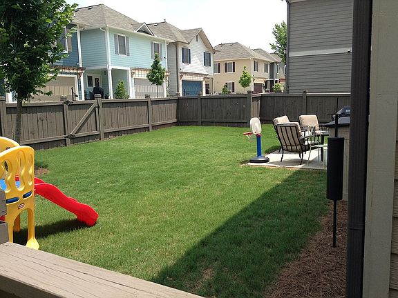 This listing is for a 4 bedroom 3.5 bath home with a 45'x30' backyard across the street from a neighborhood park in the Dupont Commons Neighborhood. The home has a dining room, kitchen, breakfast room, powder bath and living room downstairs with hardwood floors. The four bedrooms including the master are upstairs along with three more bathrooms and a laundry room. The two car garage has a tall ceiling and extra space for storage or a work area. The exterior includes a two-car driveway, a front porch, a back patio and a large fenced in backyard. The formal dining room includes a wainscoting that wraps around the entry way and into the breakfast room. The kitchen has granite countertops, lots of storage and a raised bar with plenty of seating. The kitchen is open to the breakfast room and living room. The living room contains a gas fireplace and access to a patio in the fenced in backyard. The backyard is one of the bigger ones in the neighborhood and is across the street from a neighborhood park. Our kids love spending time in the park and we can watch them from the house. However, we are usually in the park with them spending time with neighbors/friends! Please don't hesitate to contact us with any questions or to come take a look. Thanks!