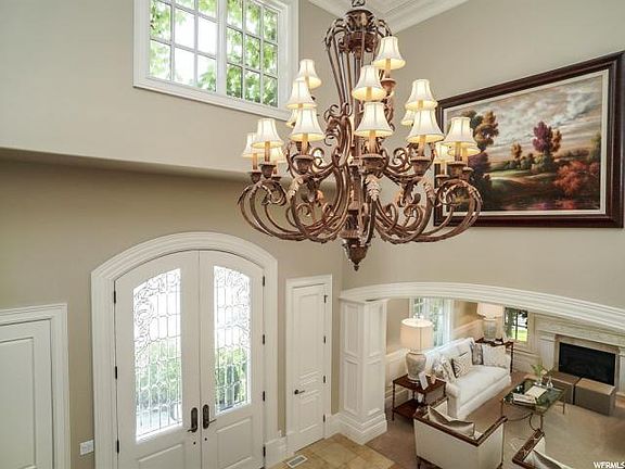 This stunning brick colonial sits on the North Salt Lake bench in an incredible neighborhood. Breathtaking rock work and landscape surround the home. Equipped with a waterfall, hot tub, and fire pit for entertaining. Gorgeous finishes throughout the home. *Office with hardwood built-ins and hidden door* Curved staircase* Gourmet kitchen with two Refrigerators, Ice maker, Thermador appliances, and a huge butler pantry* Master bedroom with fireplace* Large master bathroom & closet w/ locking jewelry drawers & hidden door to office* Upstairs bedrooms have walk-in closets and are attached to bathrooms* Big bonus room over garage* Fully finished basement* Theater with stadium seating* Downstairs kitchen* Gym w/ steam shower bathroom* MUCH MORE!!
