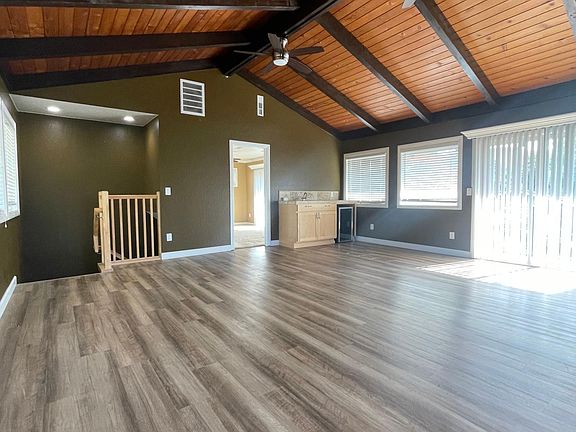 This beautiful Clayton home has 5 bedrooms and 3 full baths, it boasts two master bedrooms and a huge bonus familyroom/mancave with cathedral, wood beam ceilings, vinyl plank flooring and a wonderful view of Mt. Diablo. New dishwasher, refrigerator and electric nRange. This private bonus room and 2nd master addition is the perfect opportunity for multi-generational living or working from home. The first master bedroom offers an updated bath and sliders to the backyard. Enjoy relaxing in the large, lush private yard which offers a gazebo covered spa and trampoline.The garage is finished with painted drywall, crown molding and commercial grade carpet, great for work out space, crafting, or additional office space. Plenty of parking space at driveway.Both side yards offer tons of extra storage space. This home maps to award winning schools and offers easy access to biking and hiking trails, shopping, and dining. Tenants pay all utilities.