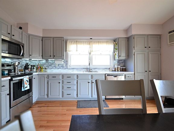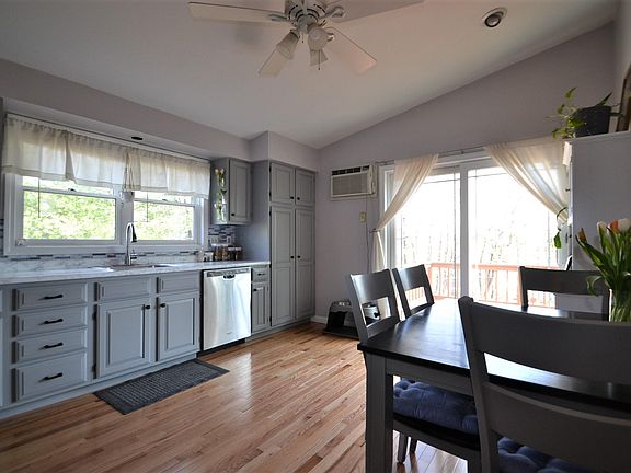 Acre lot with a country setting, situated up & back from the road providing extra privacy with the city & highway convenience. This cheerful, bright & updated Split has a contemporary flair of vaulted ceiling throughout the 1st floor, hardwood flooring in living room, kitchen, hallway foyer & stairway. The spacious eat-in kitchen has plenty of counter space, extra cabinetry, updated SS appliances, slider to side deck leading to fenced yard. There's a generous sized master with walk-in closet, slider to a second private deck off the rear overlooking the woods & yard. The lower level offers a family room, office, half bath w/laundry hookups plus a 2 car garage. Property has an extra large parking area, 2 decks, a fenced yard & 2 storage sheds. Come & see, you won't be disappointed. Showings start Friday 4/1/22.
