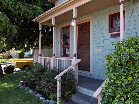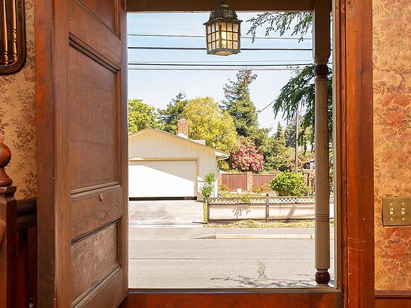 Looking for something different? Come and see this turn of the Century Victorian farmhouse! Built with redwood construction and a lot of original architectural touches including the stunning Dutch front door with dental work molding and the wood staircase with a stained glass feature window. Enjoy high ceilings and tall doorways with all the original wood wrapped windows and glass. Some windows swing open on a hinge system. Upstairs there are three bedrooms, exposed wood floors and a lovely claw foot bathtub. The sunny kitchen has tons of natural light and enjoy using the vintage cook stove . Out off the deck is a secret garden backyard with Calla lillies, apple and cherry trees and will make you forget your actually in town! The electrical system has been updated and Moore's install new roof in 2017. This home is very unique and has history you can feel.