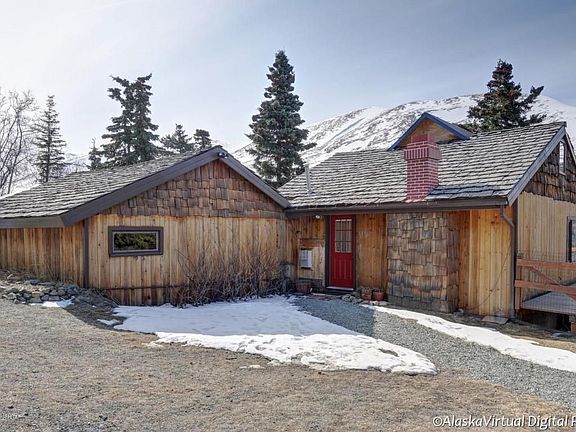 Homesteaders Cabin with lots of history. Updated and modernized 2011+. Quaint, woodsy comfortable & affordable...a good place to live while you are building a new home (maybe) down by the detached garage. Property adjacent to 80 acres homestead. Stunning views, close to Chugach State Park with it's abundant wildlife. New well and septic in 2011.