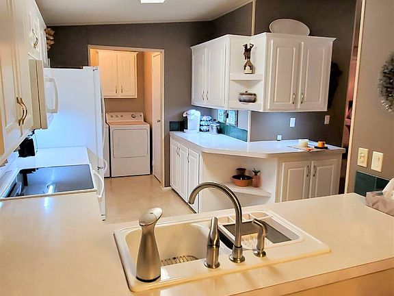 1336 Las Brisas Lane Winter Haven FL 33881 in premier senior community of Four Lakes Golf This IMMACULATE 2001 Jacobsen has many updates and this home needs nothing! Three walk in closets and 2 walk in showers! The lanai has a tile floor and glass windows with special awnings. The ceiling fan over the dining room table has retractable fan blades. The hallways are exceptionally large. The driveway has hurricane hold downs as a safety feature. This home shows the has owner's pride of care and this lovely home is move in ready and at a great price! Lot rent is $575.00 per month and includes access to all amenities except the Golf Club Four Lakes Golf Senior Community You will feel so welcome. Don't worry about not knowing how to play a game, the residents will smile and say don't worry we will teach you. Lots of Laughter, Love and Luxury and the Dress Code is .. whatever, no one cares. But leave your snow boots and wool coats home, this is shorts and sneakers living! Mode of travel (but not required} is often a golf cart, bicycle or walking. Don't leave Rover, or Ruff home, pets are welcome. Breed friendly is required. Have a tall sweet dog or overweight cat, don't worry they are both welcome. Restaurant and Bar on site Olympic sized pool Tennis Courts 18 hole regulation Golf Course 20,000 Square Foot Clubhouse Boating on Lake Haines (get to 13+ other Lakes via canals) But what can I do All Day or Night? Well ... how about this! Pickle Ball Shuffle Board Fishing Pier Craft Room with Kiln Computer Room with Computers and printers Library Card and Game Room (Bridge, Hand and Foot, Bunco, Mahjong, Dominos, and more! Billiard Tables and Poker Room Movie Theater with theater seating Gym and Sauna Stage with many Live Shows Choral Group Veterans' Group Charities Group Weekly Coffee Monthly Hot Dog& Hamburger Night Monthly Birthday and Anniversary Dance Lots of live Entertainment Darts Karaoke Nights Live Music for Dancing Dances, Parties, Trips and much more Turn on a special TV channel and you will see what is coming up you won't want to miss. Activities Director and Fun! Fun!! Fun!!! Disclosure: Information is deemed to be correct but not guaranteed.