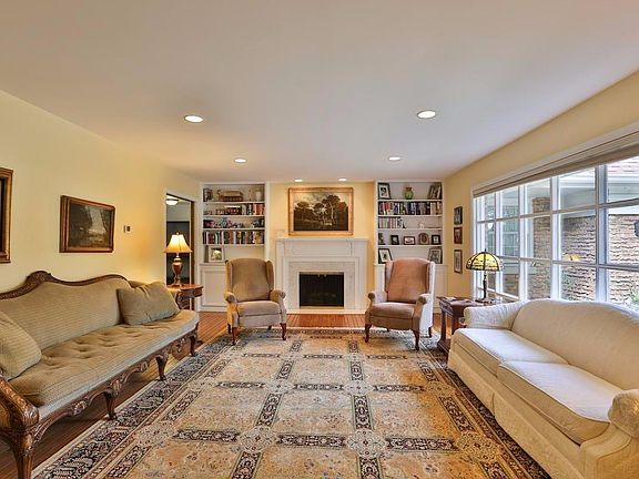 Spacious custom built 1.5 story home on a quiet cul de sac! This lovely home sits on one of the largest lots in town (100x165) and offers easy access to schools, parks, and shopping. It features a formal Living Room with hardwood floors, fireplace, built-in bookcases and full wall of windows; formal Dining Room with wood floor and bayed window wall overlooking backyard; fully equipped, updated Kitchen that is open to the Family Room which leads out to the patio with pergola, in-ground heated pool (20x40), and a pool house. The large, main level Master Bedroom offers an updated bath with jetted tub/shower, His & Her vanities and walk-in closet. Adjacent is another bedroom that was used as a nursery but now an office. The Library has a bath attached for related living if needed. Upstairs are four more bedrooms all with great closets, and two additional baths (one is a Jack & Jill). The lower level is unfinished but offers space for exercise equipment, hobby/workshop area, and storage.