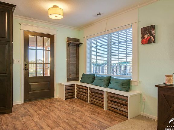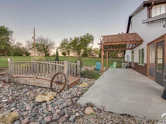 Fantastic custom metal bldg home on just over 7 acres conveniently located between Lawrence and Baldwin. Beautiful living space w/gorgeous kitchen & custom cabinets. Elegant trim & crown molding. 1 BR includes a safe room. Enjoy the wonderful screened in porch, fire pit, pergola, & above-ground pool for relaxing and entertaining. Bldg has amazing 54x30 shop/garage w/ office, work benches, and loads of shelving. Owner has created finished space above the home but is not included in sqft.