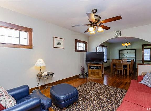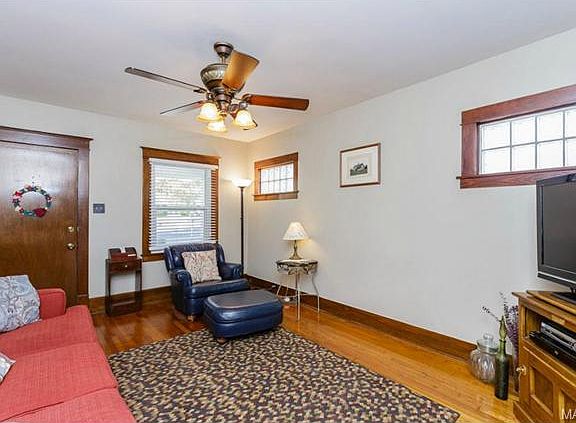 Totally charming 2 bedroom bungalow in convenient Rock Hill, in the Webster Groves School District. This 1928 home boast the "original" 2 panel wood doors, 6 inch baseboards and door hardware, all in excellent condition. Hardwood floors in the living & dining rooms and hardwood under the carpeting in both bedrooms. Spacious kitchen with an abundance of cabinets and counter space, a new dishwasher installed in 2013. A large unfinished basement with sump pump and pit. A 2 car garage with a fully screened room off the back of the garage and a wood deck to add to your outdoor living enjoyment, the backyard offers a 6 foot wood privacy fence as well. Furnace & AC replaced in 2008, hot water heater in 2014. New light fixtures and fans, larger than expected closets in this 1920's home and additional storage space above the stairs with pull down steps for easy access. Make your appointment to see if this is your next home.