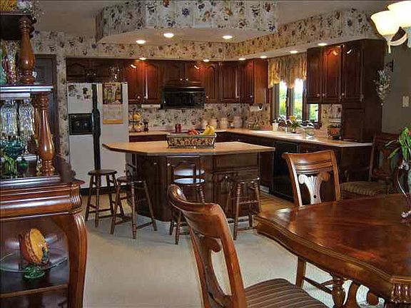 A beautiful country setting! Sitting on 10.9 acres is this 3 BR, 2 bath, custom built home w/split floor plan, nice entry w/coat closet, kitchen/dining room combo, DW & fridge stay. Dining room offers patio doors to back deck to sit & watch the wildlife from. LR features full brick gas log frpl., crown molding & cathedral ceiling. Fireplace could be converted back to wood burning. Spare bedrooms both have dbl. closets. Master bdrm. with crown molding & large walk-in closet w/dressing area. Master bath has shower/tub combo & linen closet. 6 panel doors thru-out, Andersen windows, newer heat pump (CA), newer patio doors, hardwood laminate flooring, berber carpet. Stocked, spring-fed pond! Great county setting within walking distance to town-ride your bikes to get a Jerry's Ice Cream cone! Water filtration system is rental-$16/mo.