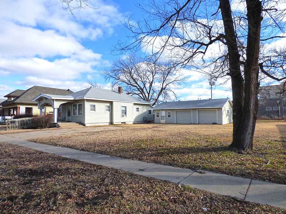THIS PROPERTY IS SELLING AT A MULTI-PROPERTY AUCTION CONDUCTED OFF-SITE AT THE HOLIDAY INN (549 S. ROCK RD) ON MARCH 3RD AT 6:00 P.M. DOORS OPEN AT 5:00 P.M. FOR REGISTRATION, OR PRE-REGISTER ONLINE. NO MINIMUM, NO RESERVE!! 3 bedroom, 1 bathroom home on large, fully fenced lot. 2+ car detached garage with office space and lots of room for storage and projects, and a additional shed in the backyard. Interior of property features large windows to allow a lot of natural light into the home, original baseboards and trim, numerous cabinets in the kitchen, and beamed ceilings. *Buyer should verify school assignments as they are subject to change. The real estate is offered at public auction in its present, "as is where is" condition and is accepted by the buyer without any expressed or implied warranties or representations from the seller or seller's agents. It is incumbent upon buyer to exercise buyer's own due diligence, investigation, and evaluation of suitability of use for the real estate prior to bidding. It is buyer's responsibility to have any and all desired inspections completed prior to bidding including, but not limited to, the following: roof; structure; termite; environmental; survey; encroachments; groundwater; flood designation; presence of lead-based paint or lead based paint hazards; presence of radon; presence of asbestos; presence of mold; electrical; appliances; heating; air conditioning; mechanical; plumbing (including water well, septic, or lagoon compliance); sex offender registry information; flight patterns, or any other desired inspection. Any information provided or to be provided by seller or seller's agents was obtained from a variety of sources and neither seller nor seller's agents have made any independent investigation or verification of such information and make no representation as to the accuracy or completeness of such information. Auction announcements take precedence over anything previously stated or printed. Total purchase price will include a 10% buyer's premium ($1,500.00 minimum) added to the final bid. Earnest money is due from the high bidder at the auction in the form of cash, check, or immediately available, certified funds in the amount $3,500.