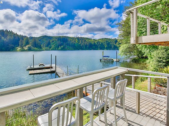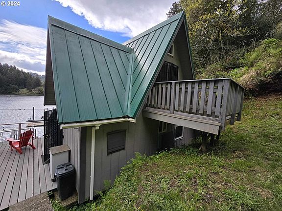 Serene & private lakefront retreat w/bonus features valued at over $142k you will not find elsewhere! Price to go this property boasts 92 feet of beach frontage, providing direct access to the tranquil waters of Tenmile Lake. Situated in a wind-protected private cove w/southern exposure, this cabin offers a peaceful setting for relaxation & enjoyment. The cabin comfortably sleeps up to 10 guests, making it ideal for family gatherings or hosting friends. It features 1.25 baths inside, w/an additional popular & functional outdoor shower & DEQ approved outhouse-perfect for those who enjoy spending their days outdoors by the lake. One of the many standout features of this property is its year-round deep water levels, ensuring easy access for water activities throughout the seasons. The large top-of-the-line 8-vessel moorage system provides ample space for boats & watercraft. Additionally, the aluminum gangway w/multi-tiered plastic lifetime decking system & stainless-steel aircraft cable railings offers both functionality & durability. The wide anti-slip stairless ramp makes it convenient for using dock carts & accessing the water. Top it off w/steel pilings & you have the perfect set up that will last a lifetime! Decades of thoughtful touches built this little masterpiece w/extensive outdoor entertaining areas that enhance the overall lakefront experience. Waterproof aluminum decking off the main living area is equipped with an extensive gutter system to keep the large bonus storage area & secured shop dry year-round. A 6-person hot tub & sauna provide relaxation options, while hickory cabinets, granite countertops, washer/dryer, dishwasher, microwave & trash compactor add convenience to daily living. The cabin offers endless lake views that surly complete this fairytale lakefront package, providing a picturesque backdrop for memorable moments with family & friends. Come See why everyone is suddenly talking about Lakeside Oregon. He who hesitates...well you miss out!