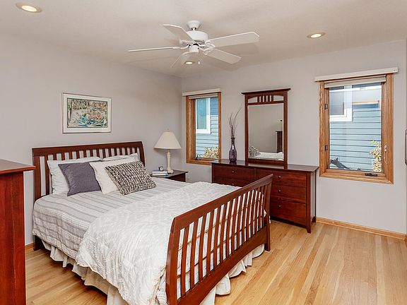 This 4 bedroom, 5 bathroom walk-out ranch home backs up to 15 acres of city park and is so dreamy. You are immediately greeted by how open and bright this home is with its open concept floor plan and stunning windows throughout. Off to the left of the entry is a formal dining area that flows straight into the living room with a dual sided stone fireplace. To the right of the living room is currently another sitting room, but could be used as a home office. Next to this you will find a bedroom connected to a full bathroom and further down the hall is the owner's suite that leads out to the deck. Off of this is the en-suite bathroom that has a great walk-in shower, jetted sunk-in tub, and dual vanities. On the other side of the living room is the amazing kitchen that has beautiful honey oak cabinetry, great countertop space, and a stainless steel fridge. You'll fall in love with the eating area nook that overlooks the backyard and city park. Off the kitchen is the laundry room. Downstairs you'll find a great sized bedroom and full bathroom to the right of the stairs as well as another room currently used as the home office. The main living area in the basement has tons of space and another fireplace. Behind the main living area is a kitchenette and dining area for an in-law suite or guests.