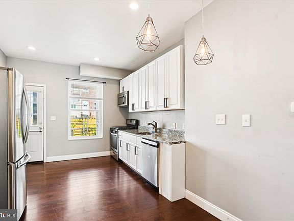 This charming interior town home has an open concept first floorplan with living room, half bath, kitchen and dining area. deck and fenced yard. The second-floor main bedroom has its own deck facing the rear. The basement has the utilities and is completely open for lots of storage or your imagination. Walk to Carroll Park